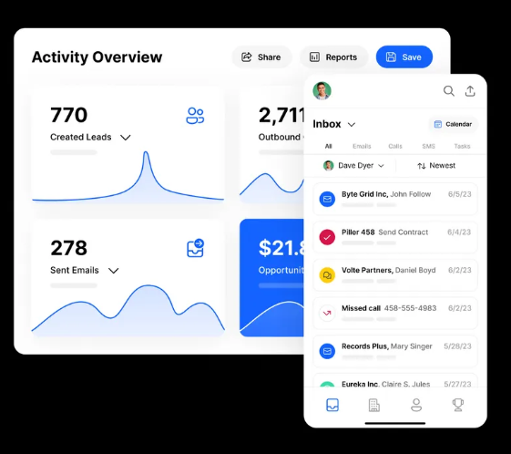 9:Analytics and Insights: Gain a deeper understanding of your sales performance with Close CRM’s analytics and insights. Track key performance indicators, identify trends, and make data-driven decisions to optimize your strategies for better results.